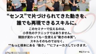 スポーツ【伊那市】動きを磨くセミナー evolz 動きを磨くセミナー「センス」で片づけられがちな動きを、再現できるスキルへ。競技を越えて通用する“動きの本質”に迫る実践型セミナー。開催日2026年2月7日(土)会場伊那市 武道館 2F(剣道場)講師八木一憲(元やり投げ選手/動き... 2026.02.07スポーツワークショップ伊那市