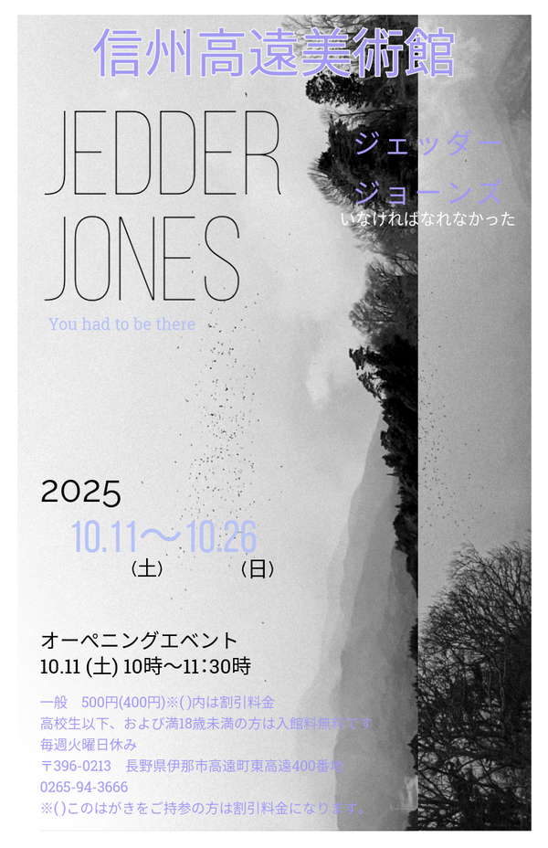 【伊那市】写真展「ジェッダ―・ジョーンズ いなければならなかった」 伊那市 2025.10.112025.10.20 開催期間 2025年10月11日 - 2025年10月26日 09:00 - 17:00 Add To Calendar Download ICS Google Calendar iCalendar Office 365 Outlook Liveイベントタイプ 伊那市文化・アート写真展「ジェッダ―・ジョーンズ いなければならなかった」高遠の市民ギャラリーで開催。ジェッダ―・ジョーンズによる作品を通して、“そこにいなければならなかった”瞬間を見つめる写真展。開催日 2025年10月11日(土曜日)~2025年10月26日(日) ※休館日:火曜日会場 伊那市立高遠町歴史博物館 市民ギャラリー入館料 無料▶ 詳細をウォッチ!!