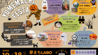 お祭り・フェスティバル【箕輪町】ゆめまちフェスタ YUMEMACHI FESTA(ゆめまちフェスタ)おいでよ!おでかけ YUMEMACHI LABO箕輪町の「夢まちLABO」で、ハロウィンにちなんだ体験イベントが開催されます。親子で楽しめるワークショップやゲームが盛りだくさん!開催日202... 2025.10.18お祭り・フェスティバル箕輪町