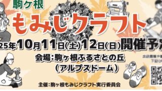お祭り・フェスティバル【駒ヶ根市】第16回 駒ヶ根もみじクラフト 第16回 駒ヶ根もみじクラフト2025年10月11日(土)・12日(日)、駒ヶ根市東伊那の「駒ヶ根ふるさとの丘」で開催予定。秋の澄んだ空気と紅葉に包まれた屋外クラフト市です。開催日2025年10月11日(土)・12日(日)会場駒ヶ根ふるさと... 2025.10.11お祭り・フェスティバルマーケット駒ヶ根市