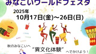 お祭り・フェスティバル【駒ヶ根市】協力隊週間 みなこいワールドフェスタ みなこいワールドフェスタ国際交流のまち・駒ヶ根で開催される多文化体験イベント。今年は協力隊発足60周年企画も登場!開催日 2025年10月17日(金)~26日(日)会場 駒ヶ根市・中川村・宮田村 各会場注目 10/17(金)~24(金)協力... 2025.10.17お祭り・フェスティバルワークショップ中川村宮田村食駒ヶ根市